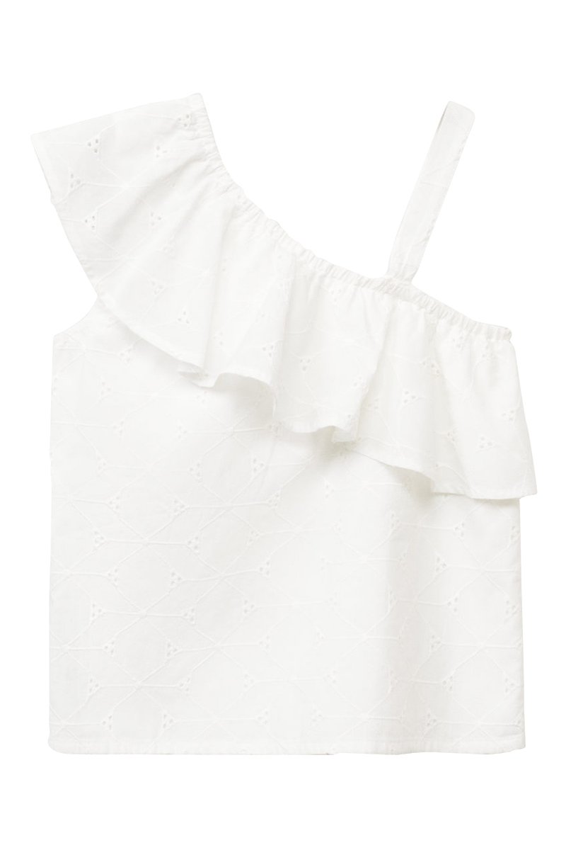 Blouse asymétrique brodée - Blanc
