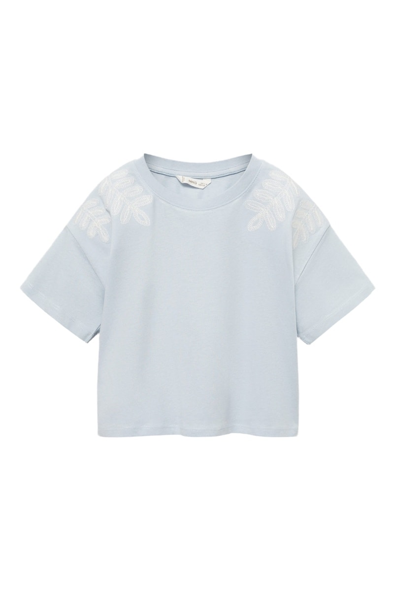 T-shirt détails brodés - Bleu céleste