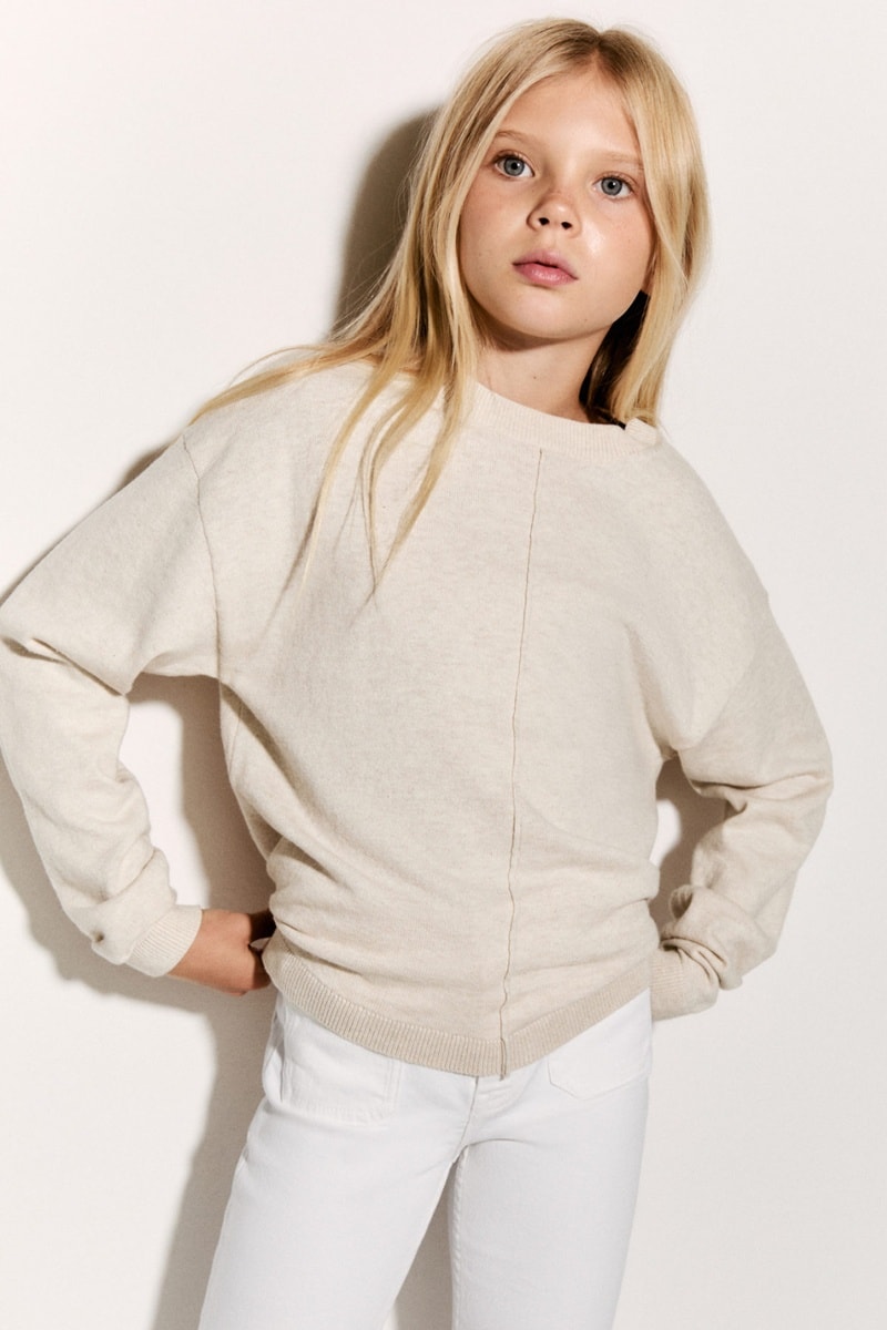 Pull-over en coton coutures décoratives - Beige