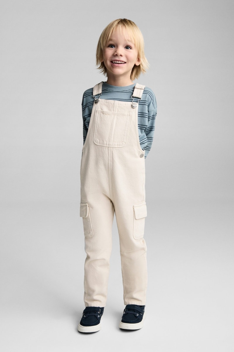 Salopette longue en jean poche - Écru