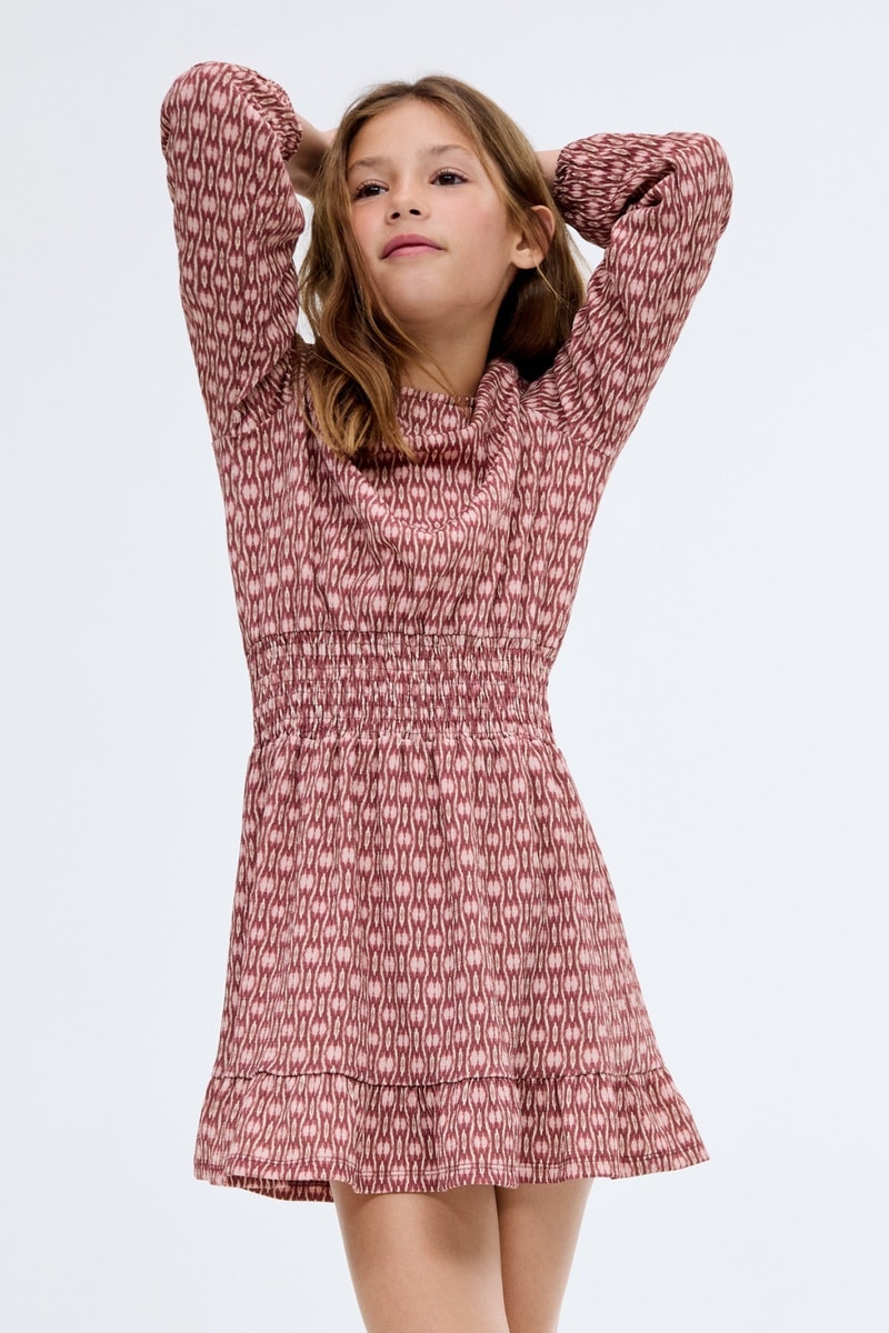 Robe froncée imprimée - Rouge