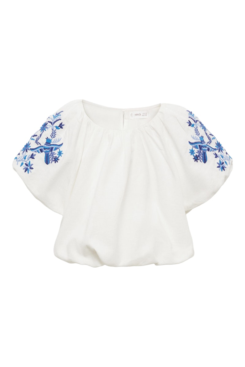 Blouse brodée manches bouffantes.