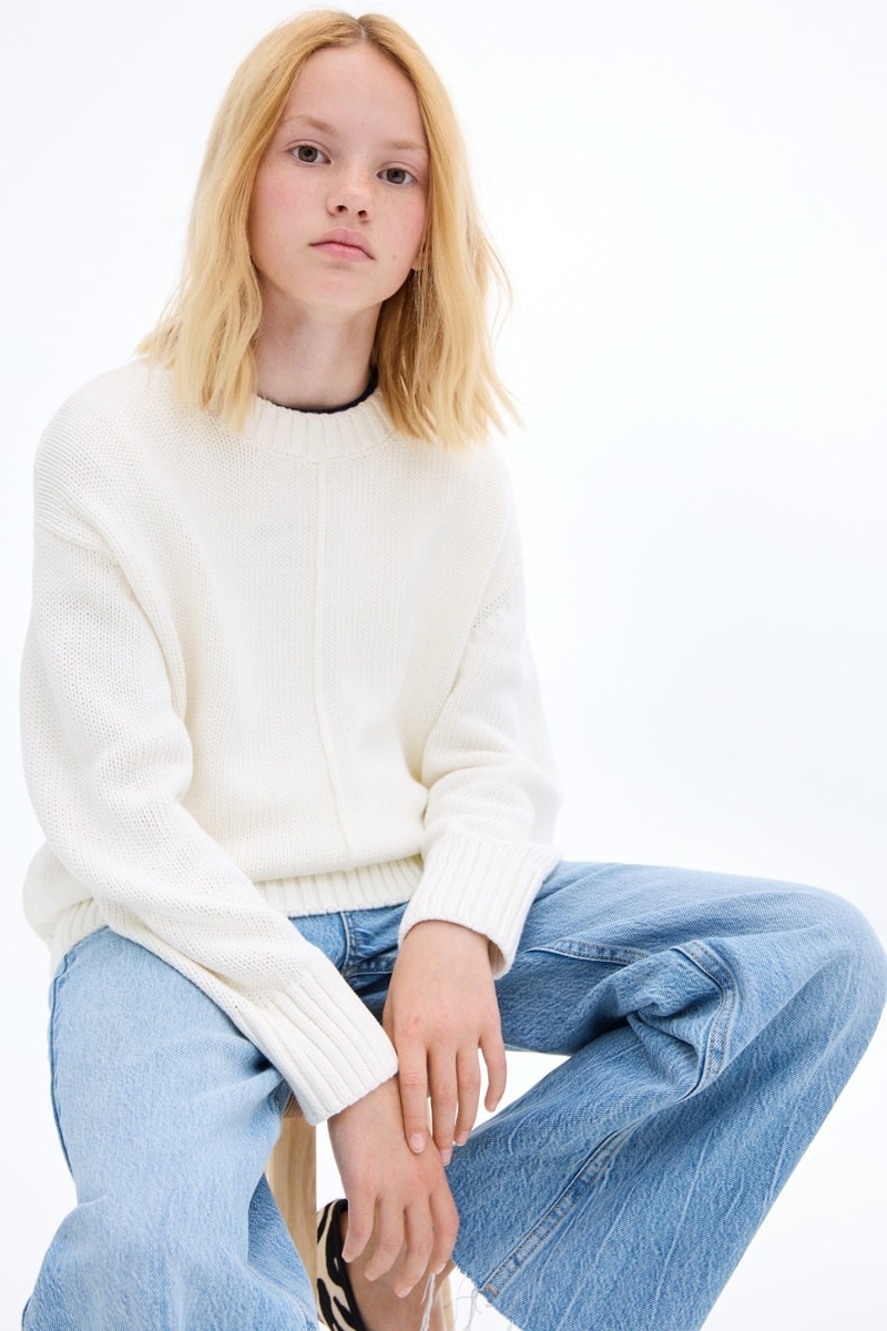 Pull-over maille manches longues - Blanc