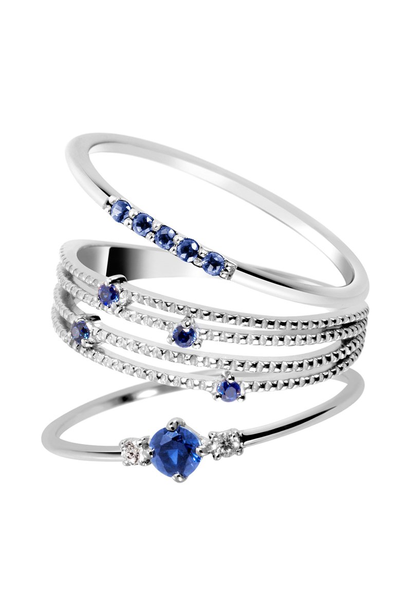 3 bagues - Argent, saphirs et cristaux tchèques