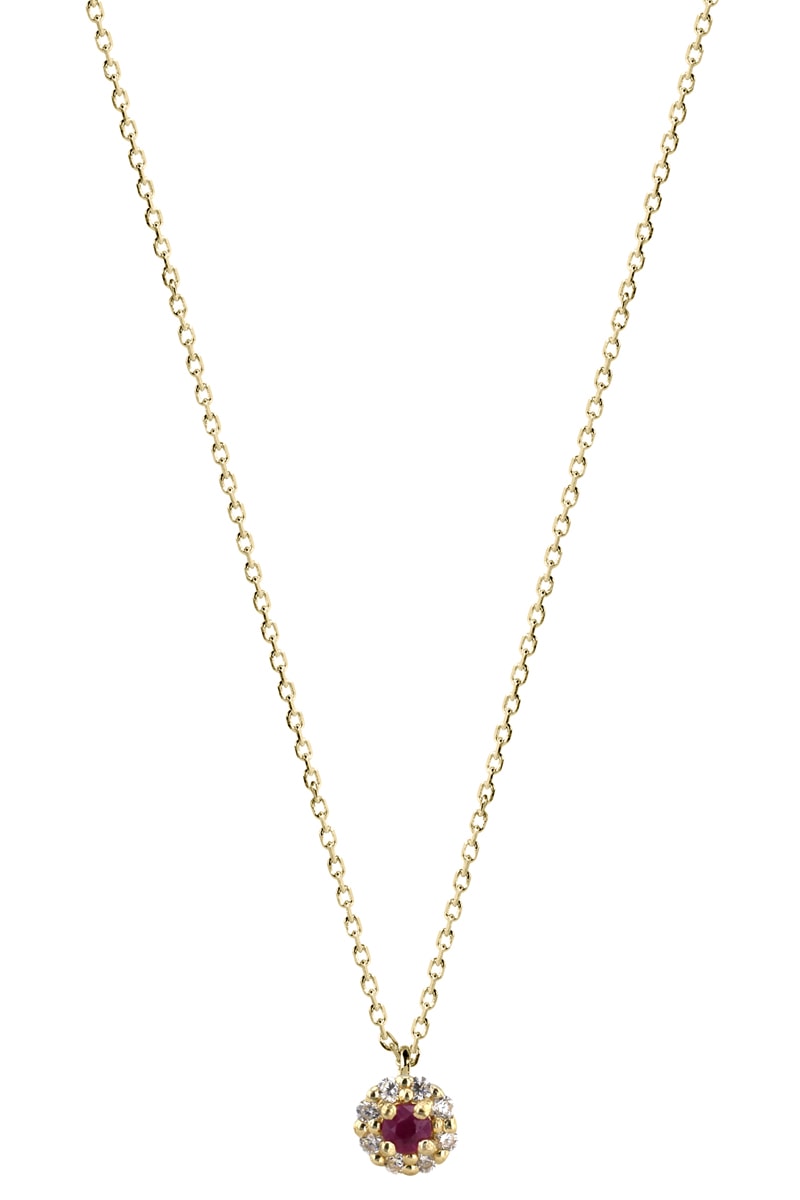 Collier en argent plaqué or jaune serti d'un rubis et de zirconiums.