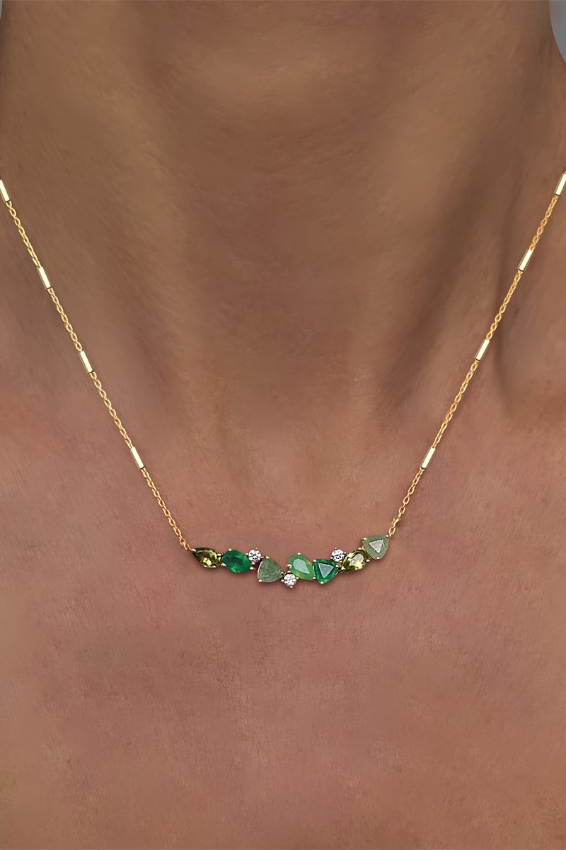 Collier - Argent plaqué or jaune, aventurines, onyx, péridots et chrysoprase
