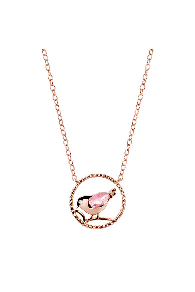 Collier en argent plaqué or rose serti d'un quartz et d'un zirconium.