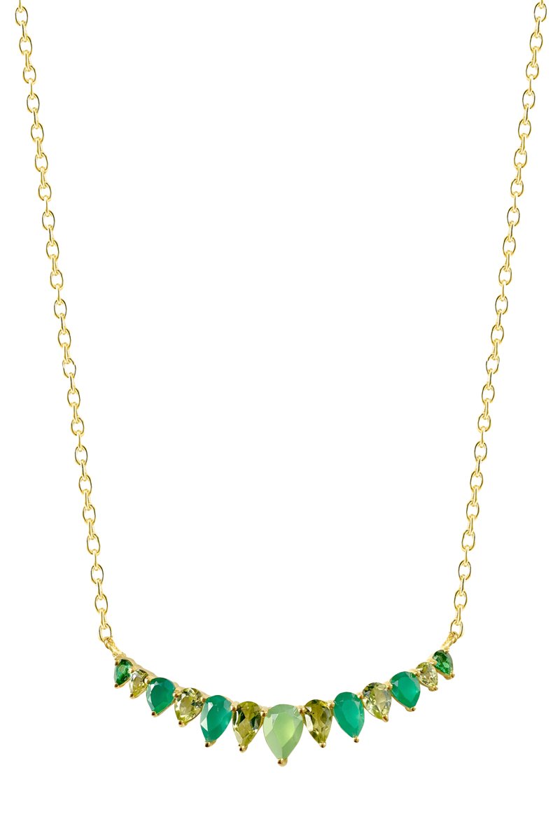 Collier en argent plaqué or jaune serti d'onyx, de péridots et de zirconiums.