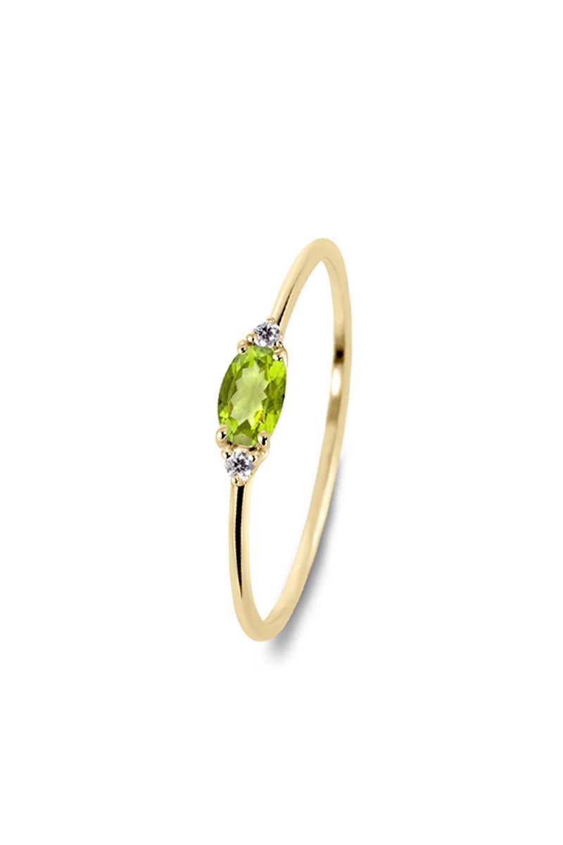 Bague en argent plaqué or jaune sertie d'un péridot et de zirconiums.