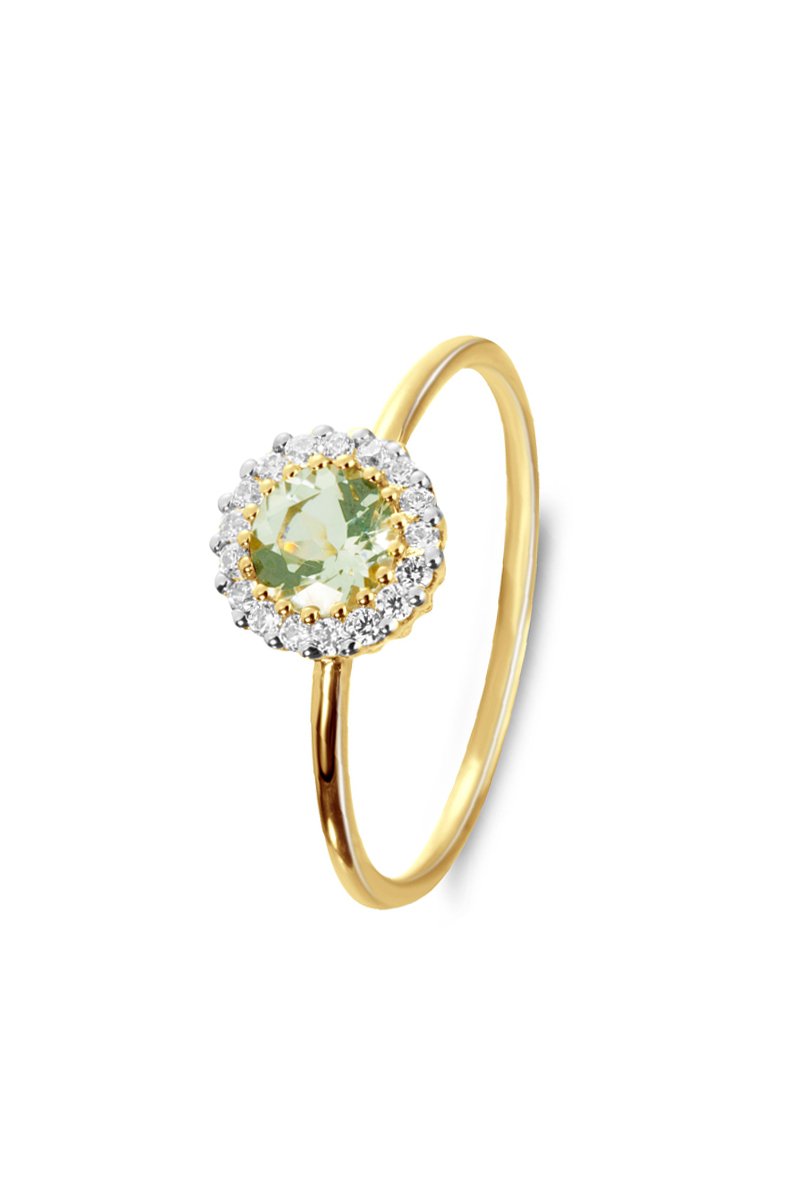Bague en argent plaqué or jaune sertie d'une améthyste et de zirconiums.