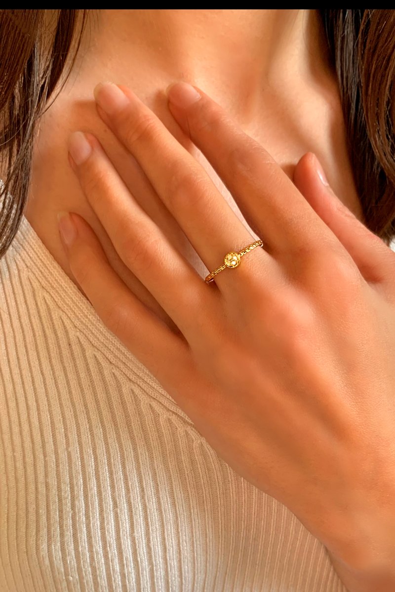 Bague en argent plaqué or jaune sertie de 4 diamants.