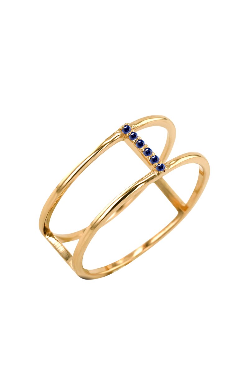 Bague - Argent plaqué or jaune et saphirs
