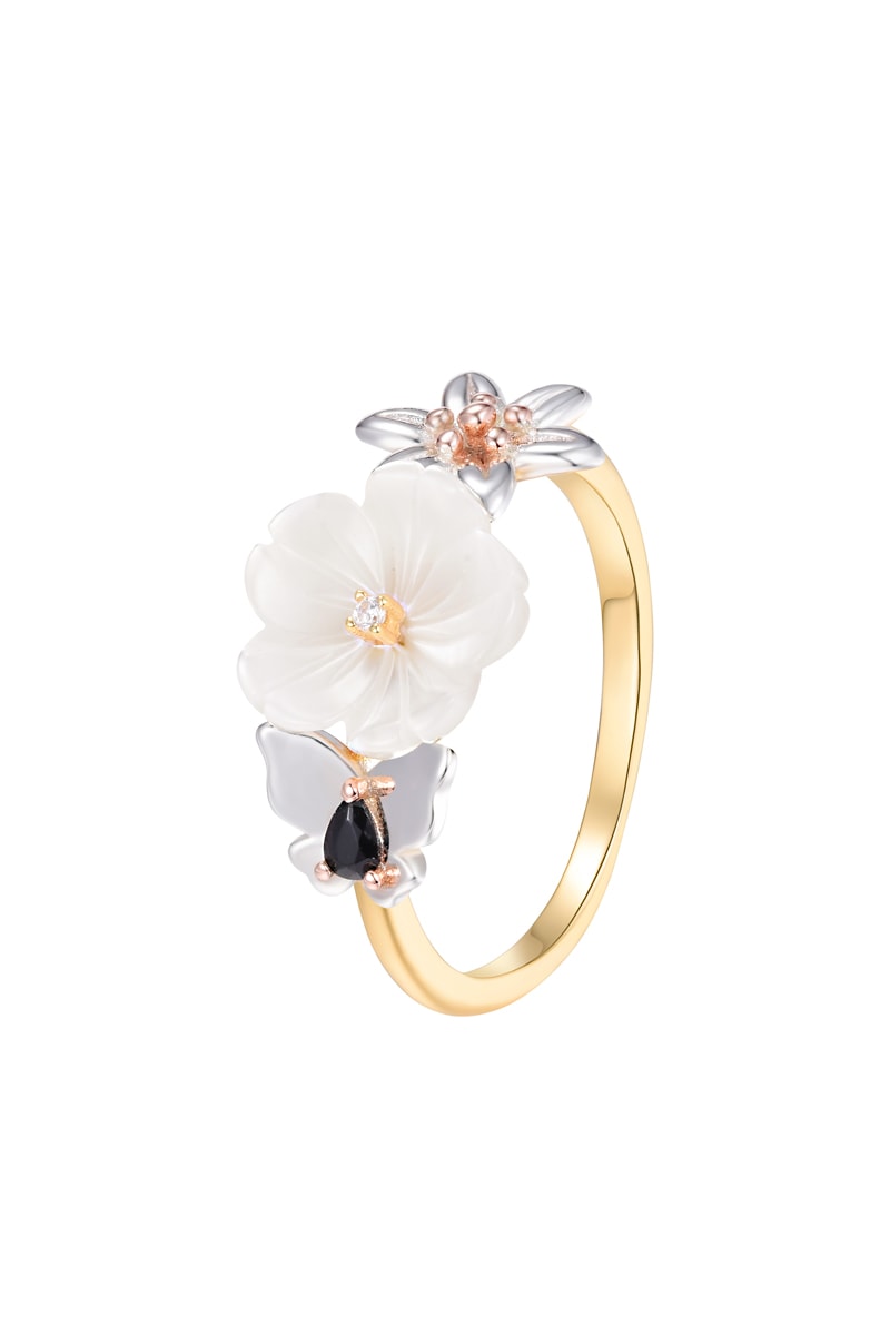 Bague - Argent, argent plaqué or jaune, argent plaqué or rose et nacre