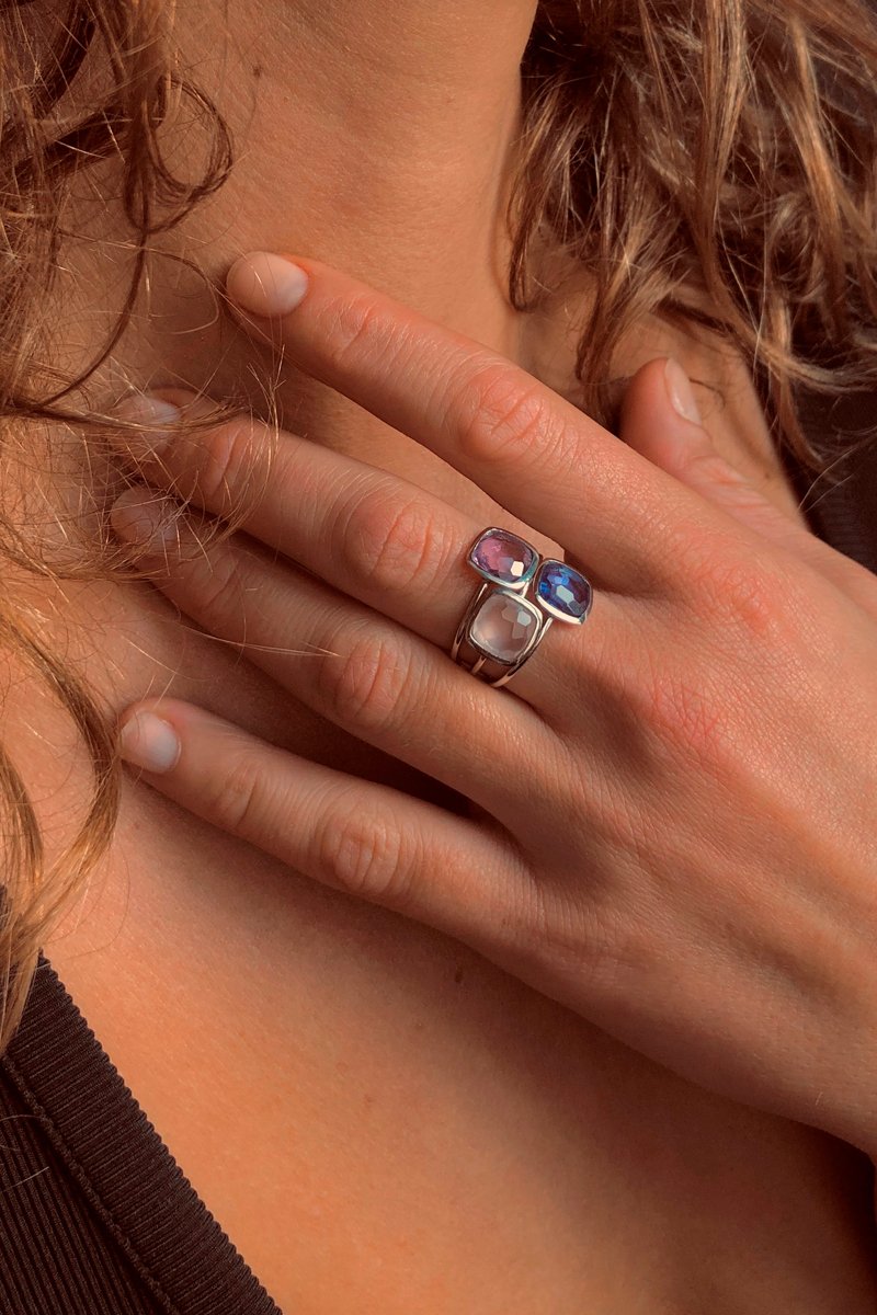 3 bagues - Argent, améthyste, tanzanite et quartz