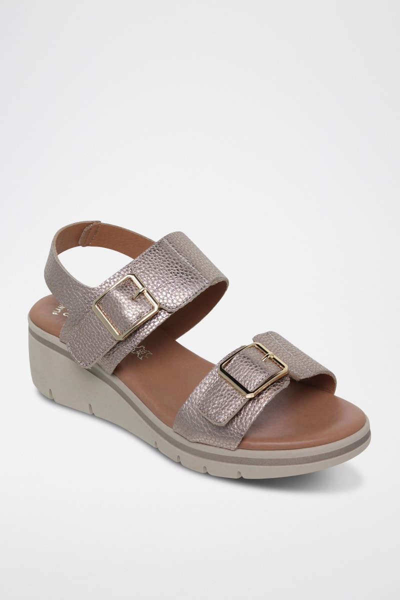 Sandales compensées en cuir grainé.