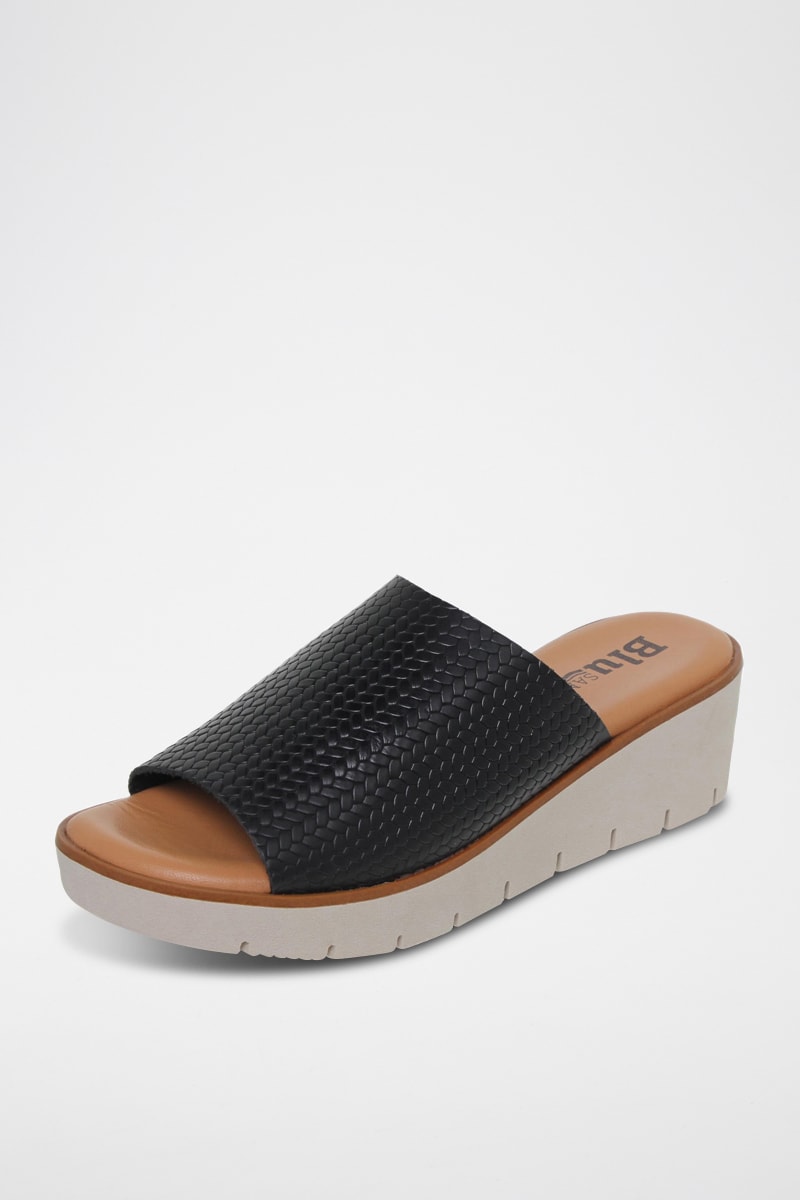 Mules compensées en cuir.