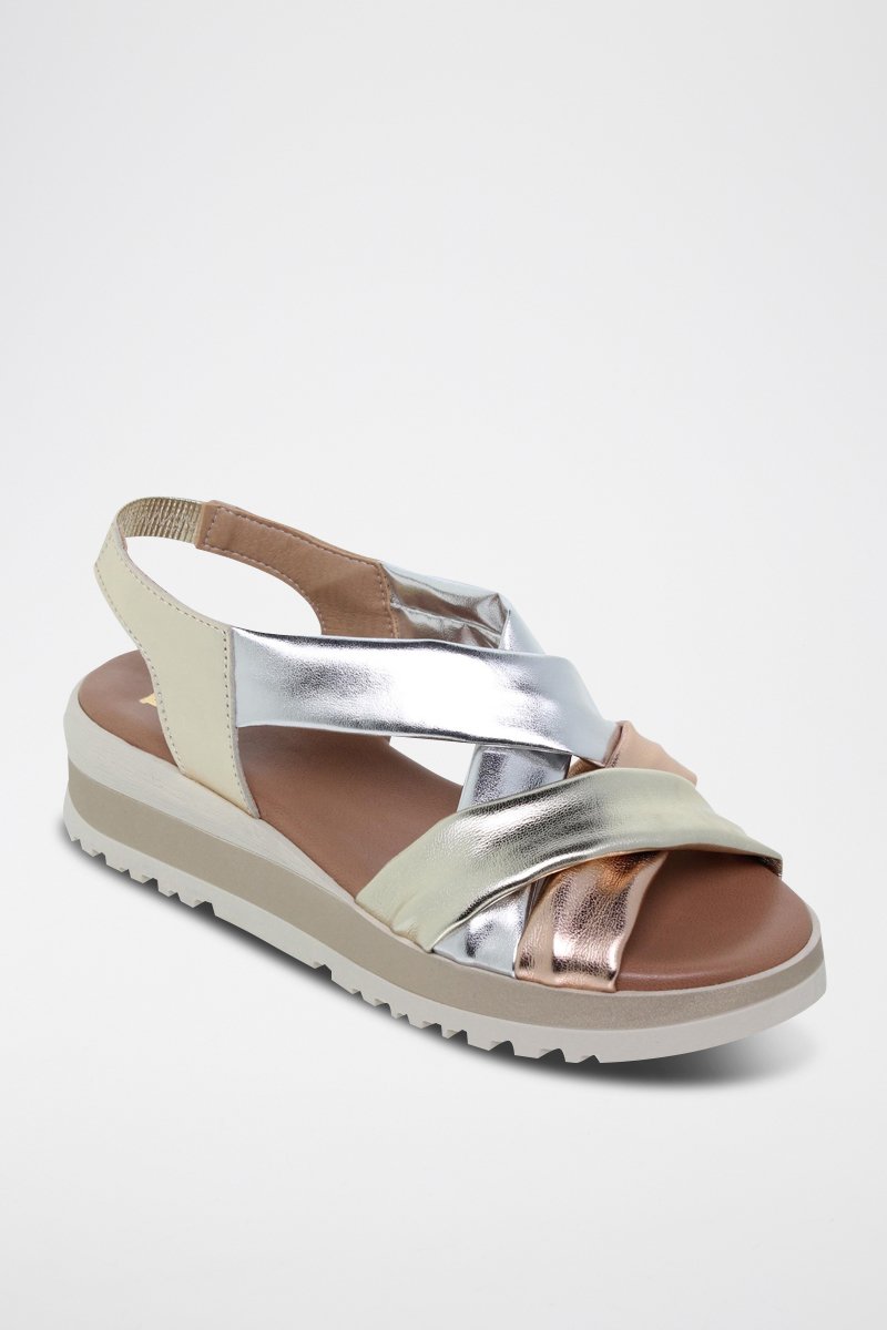Sandales compensées en cuir - Argenté