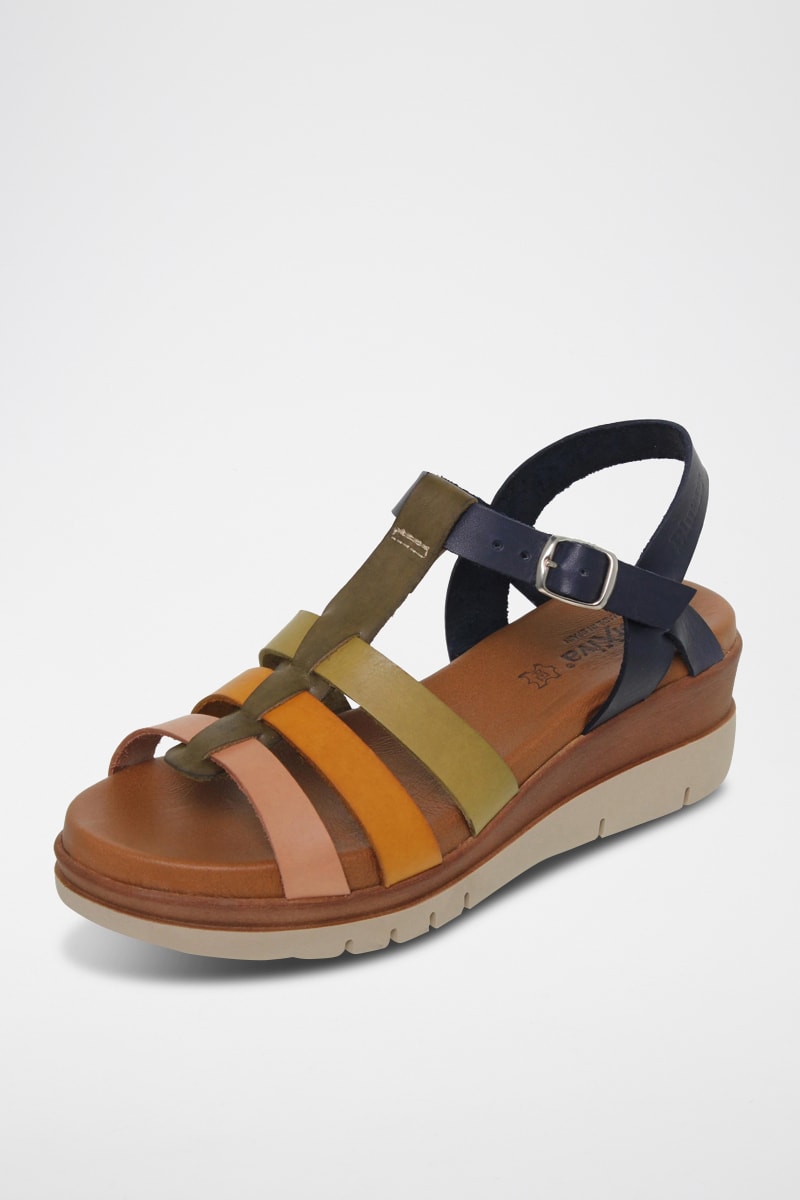 Sandales compensées en cuir - Multicolore
