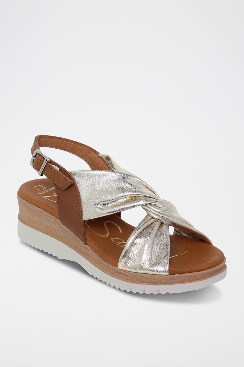Sandales compensées en cuir.