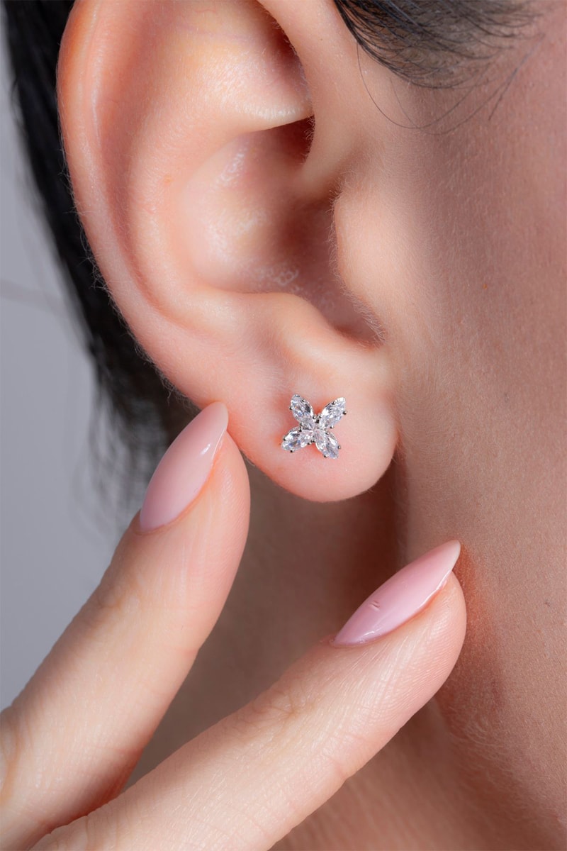 Puces serties de 4 zircones.