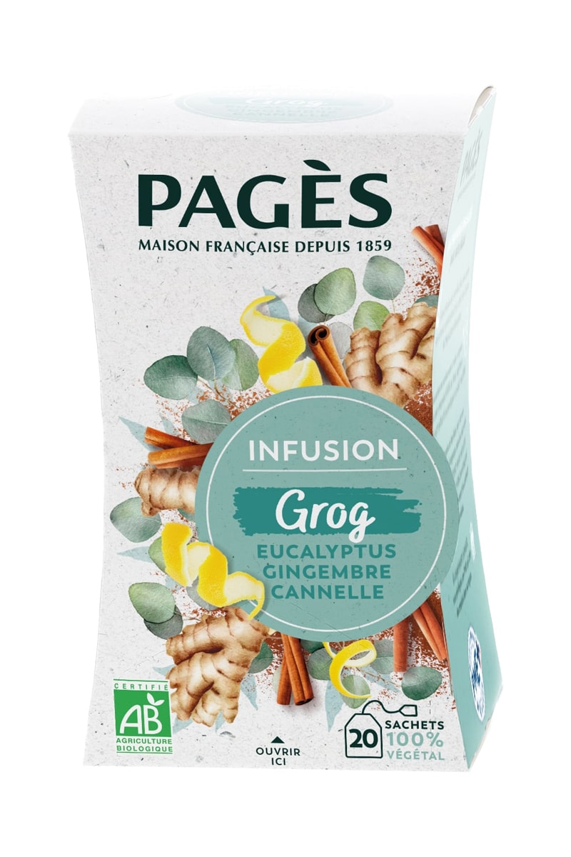 Infusion bio grog - eucalyptus, gingembre, cannelle, citron - 20 sachets