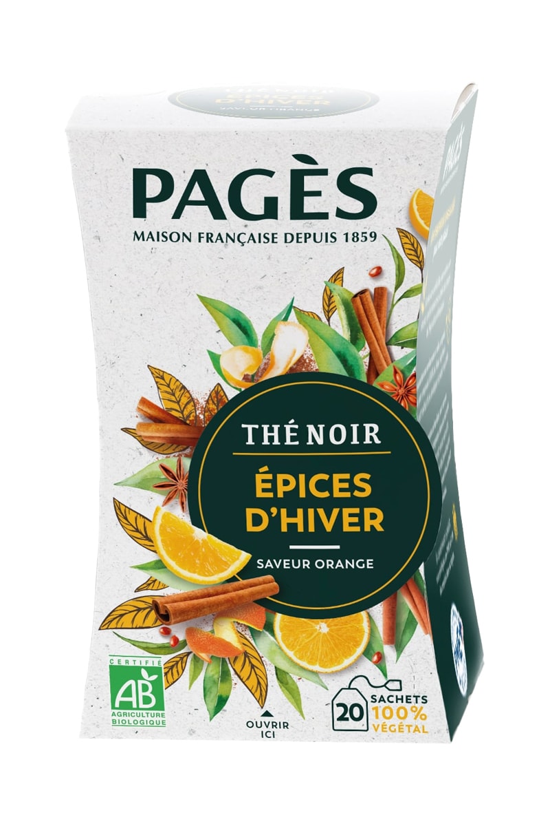 Le thé noir Épices d'Hiver Bio Pagès allie la douceur du thé noir aux saveurs intenses des épices.