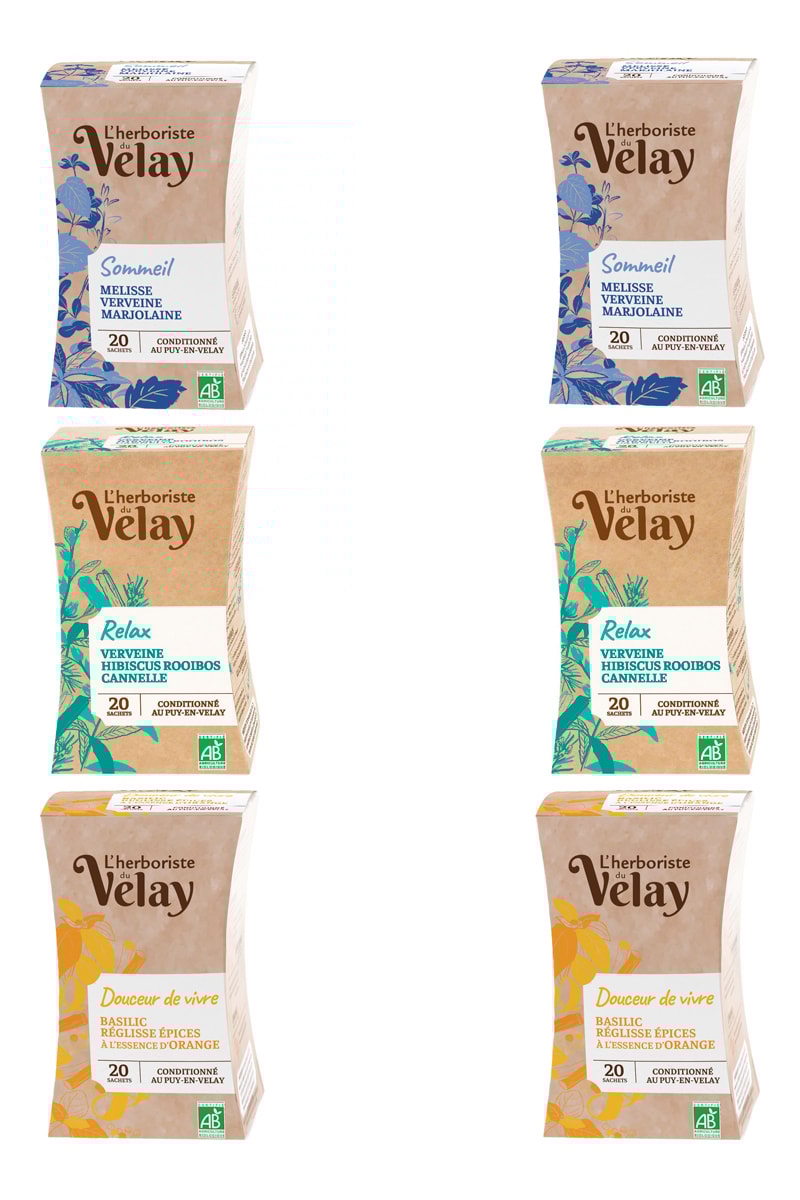 2 x Infusion sommeil mélisse verveine marjolaine bio - 20 sachets, Relax (Verveine, Hibiscus, Rooibos, Cannelle) - 20 sachets et 2 x Infusion douceur de vivre basilic réglisse épices orange bio - 20 sachets