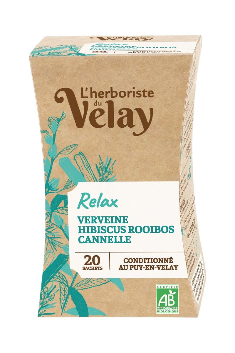 20 sachets de thé Relax (Verveine, Hibiscus, Rooibos, Cannelle).
