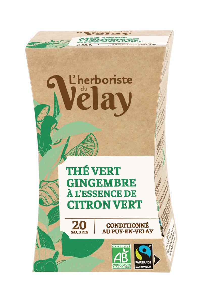20 sachets de thé vert Gingembre Citron Vert.