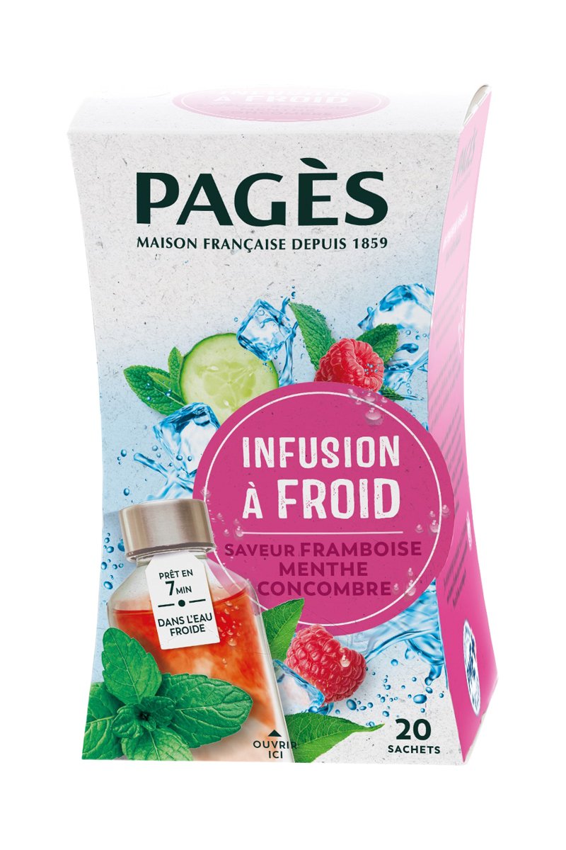 20 sachets d'infusion glacée Framboise Menthe Concombre.