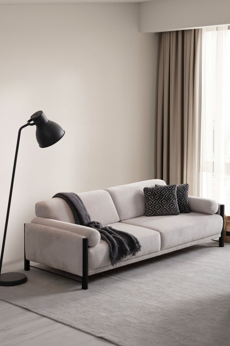 Canapé droit en bois - Beige - 3/4 places - Tissu structuré