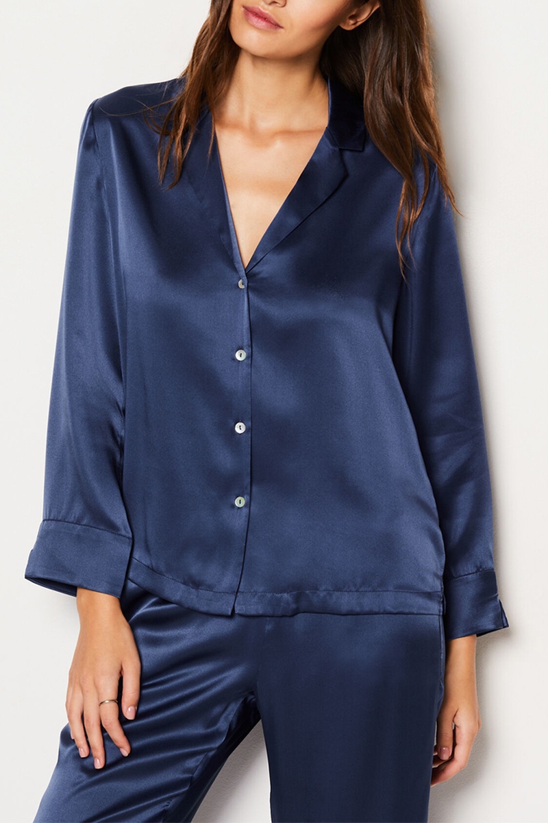 Chemise de pyjama en soie Pearly - Bleu nuit
