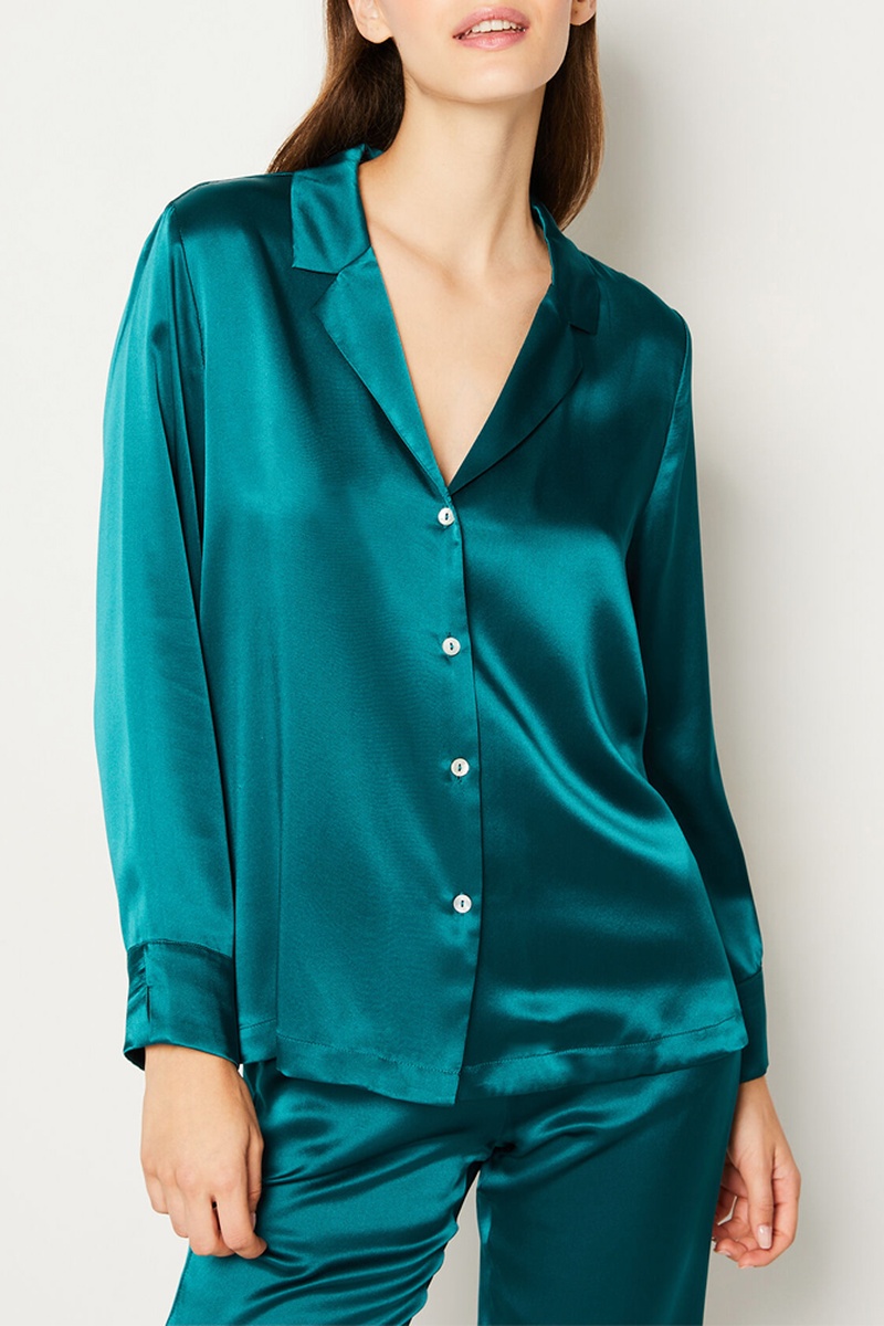 Chemise de pyjama en soie Pearly - Vert émeraude