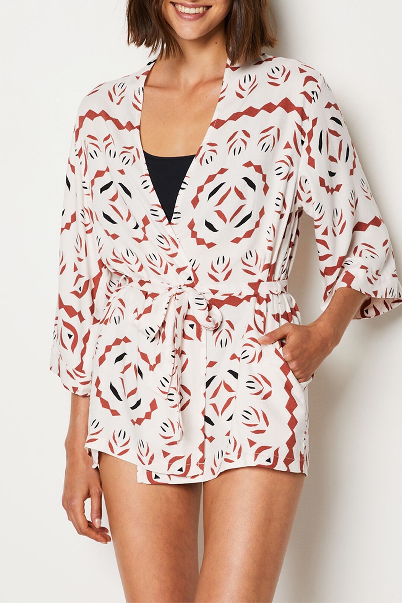 Kimono Surie - Rouge brique et blanc