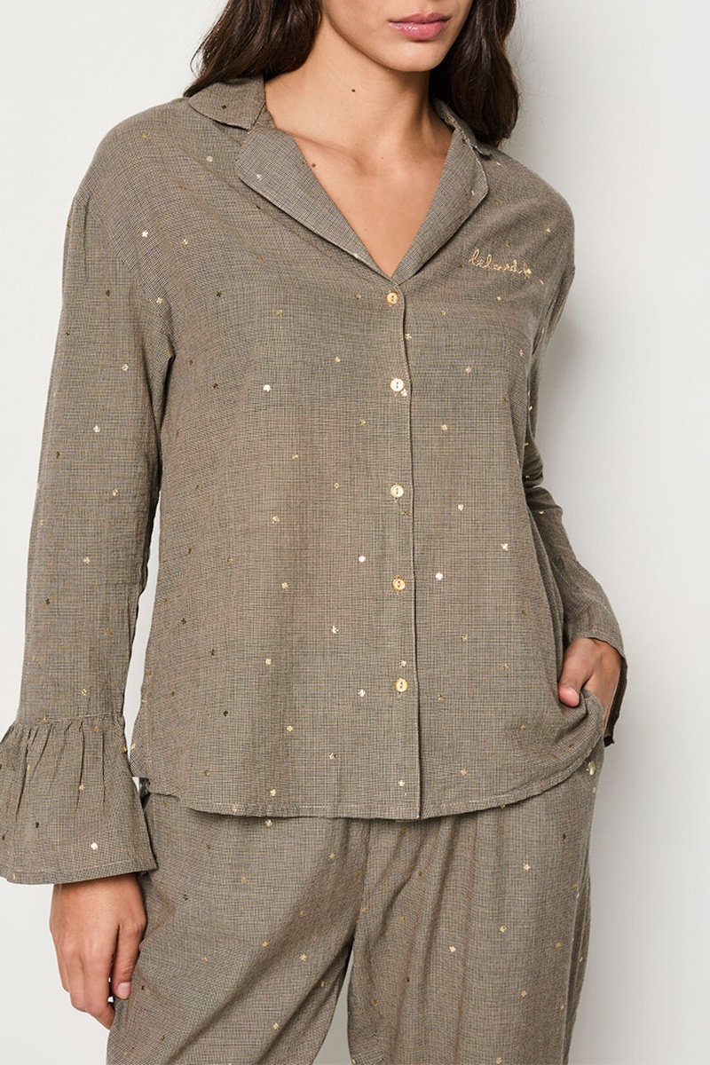 Chemisier à manches longues volantées.