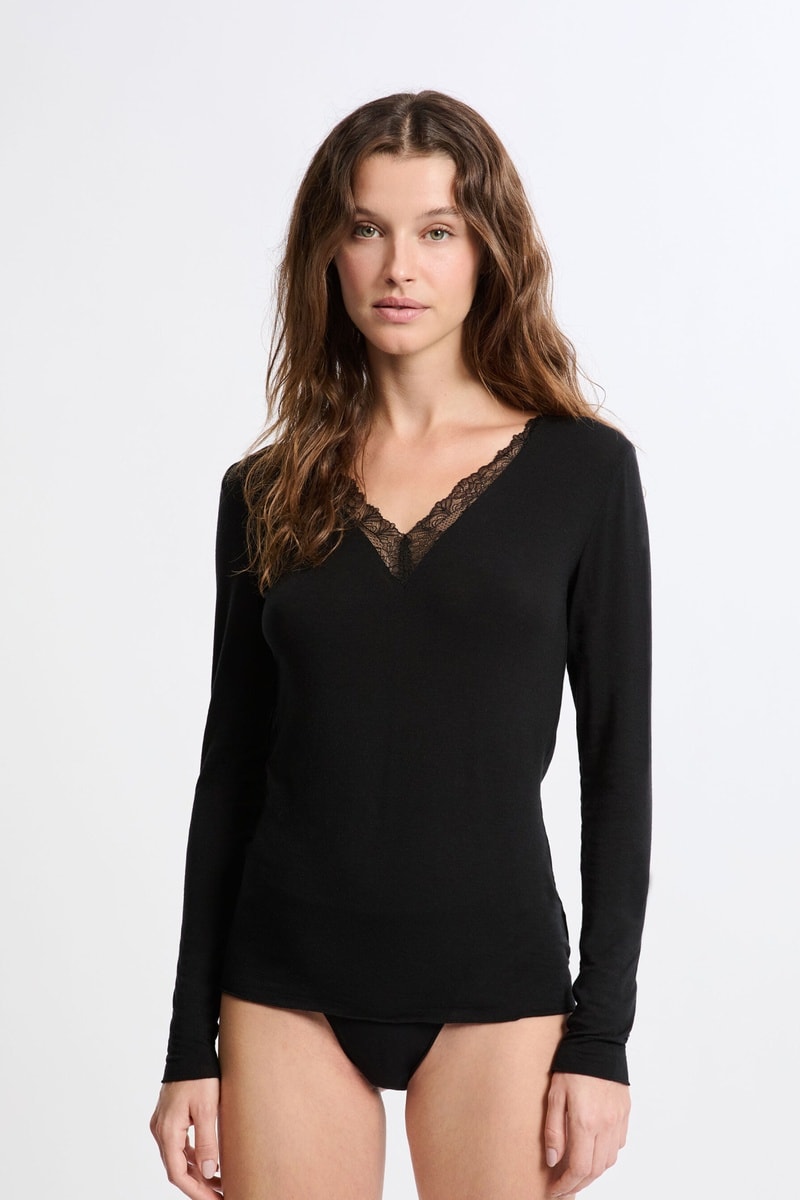 T-shirt de pyjama Warm Light - Noir