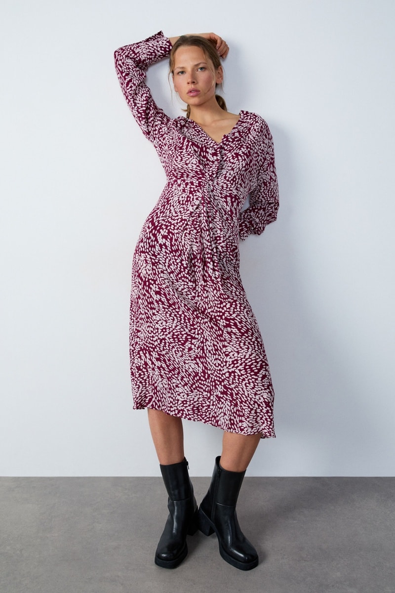 Robe longue Abstract Poetry - Bordeaux et blanc