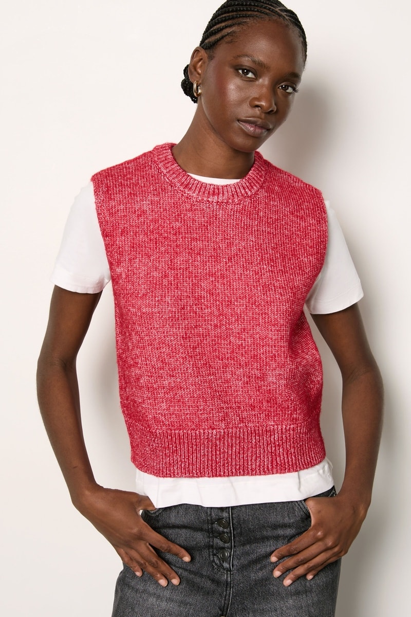 Pull sans manches Essentiel - Rouge chiné