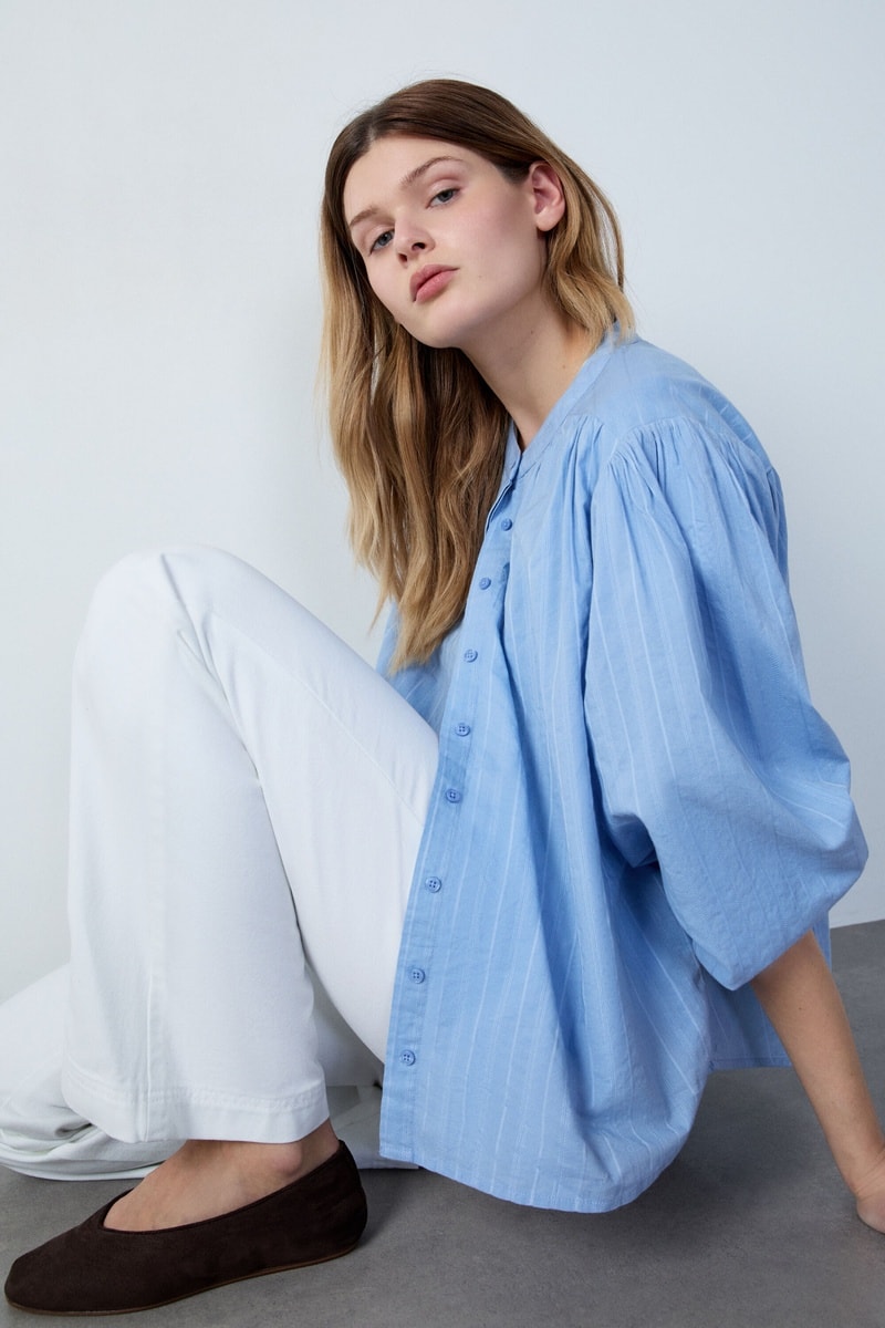 Chemisier à manches longues bouffantes.