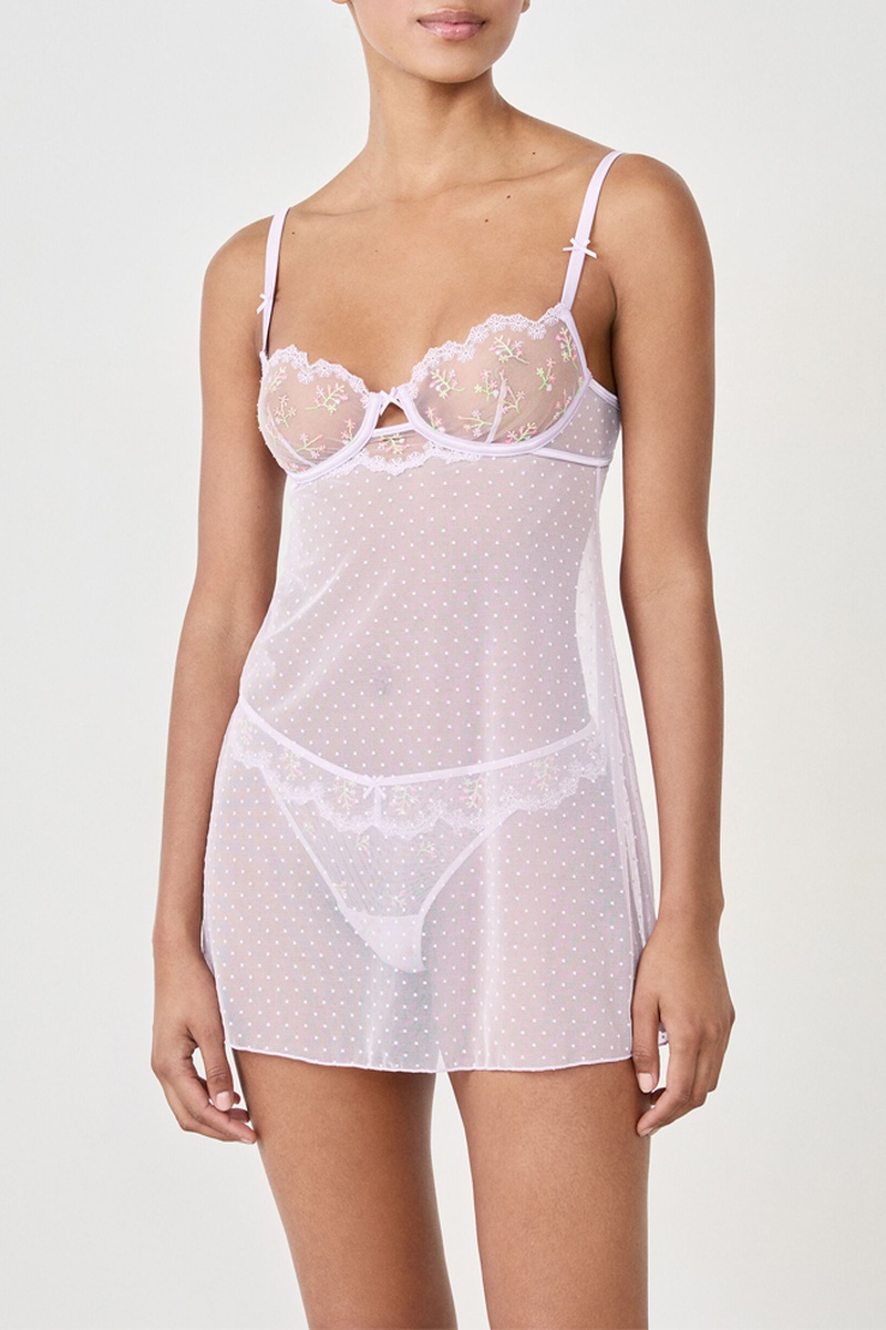Nuisette en tulle plumetis et tulle brodé à armatures.