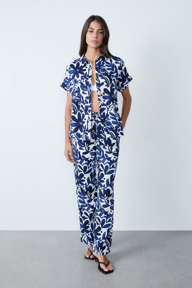 Chemisier en lin Essentiel - Blanc et bleu marine