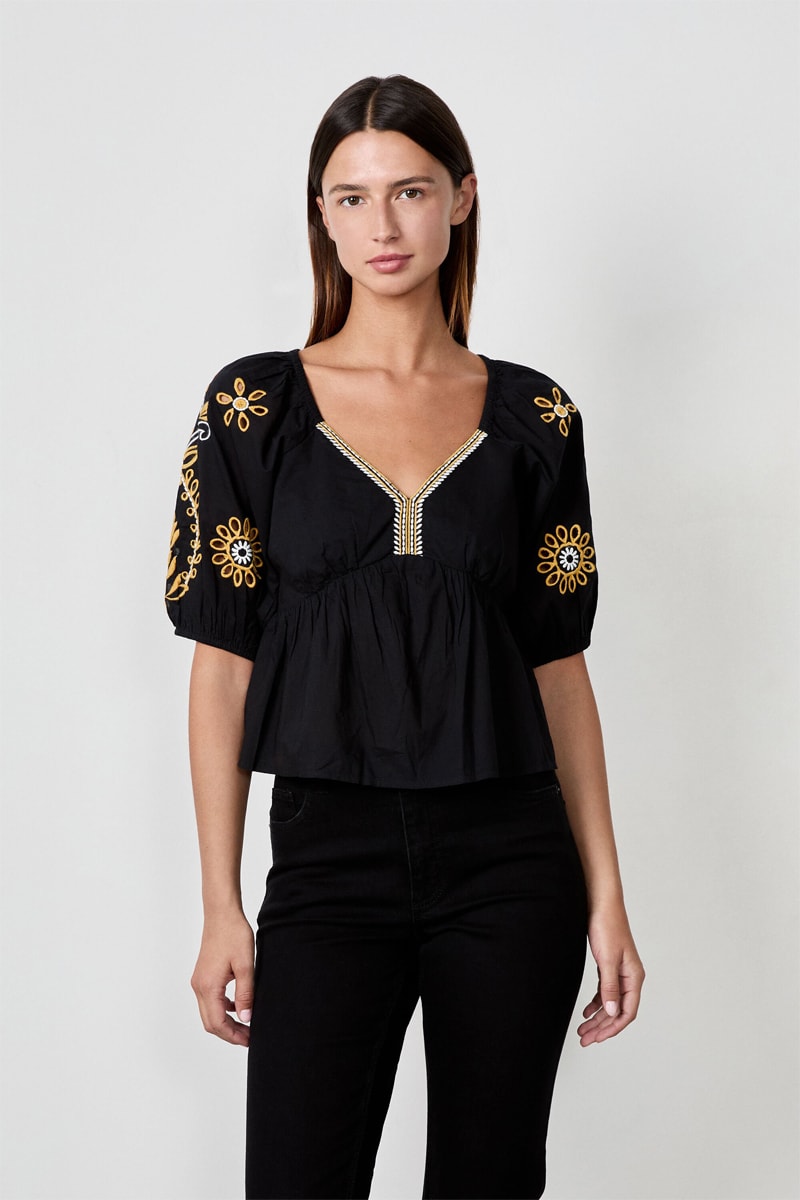 Top à manches mi-longues en broderie anglaise.