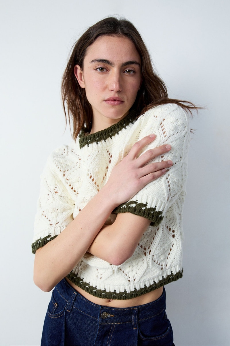 Top en maille ajourée et torsadée.