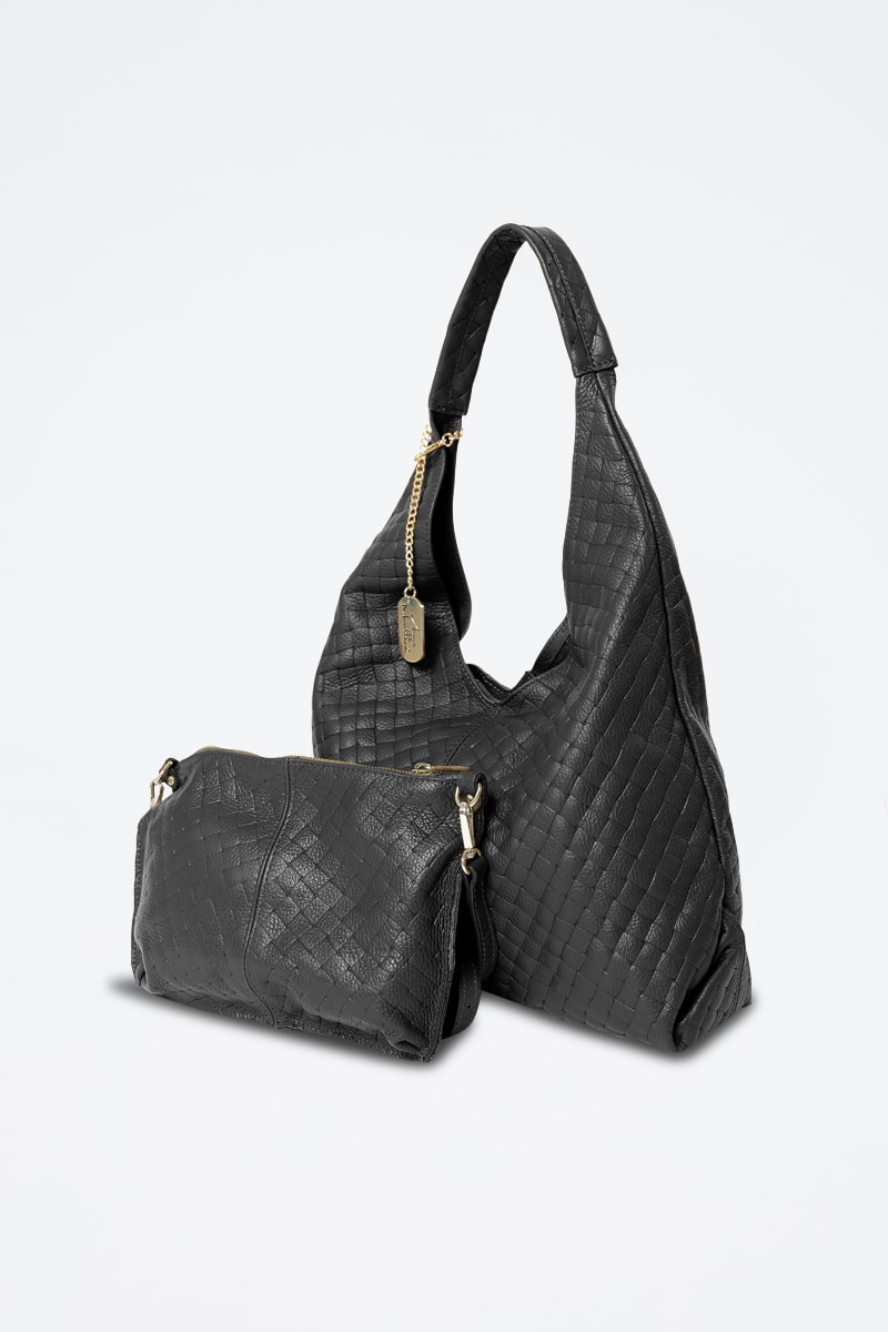 Cabas et sac bandoulière en cuir Nicolina - Noir