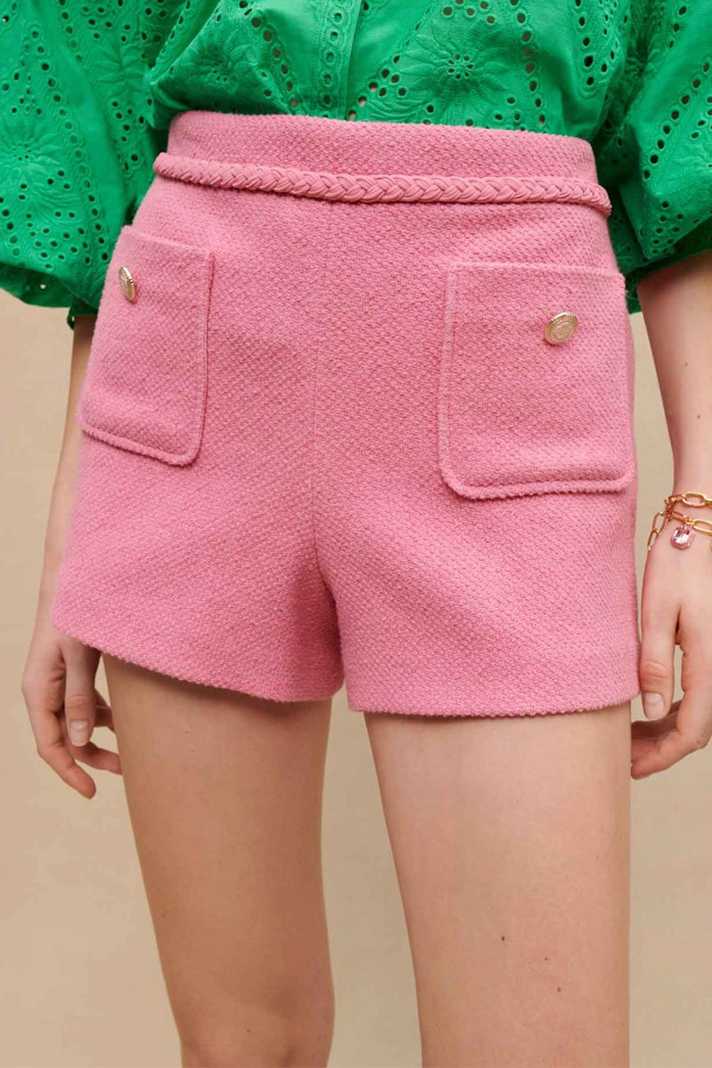 Short en tweed taille haute - Rose