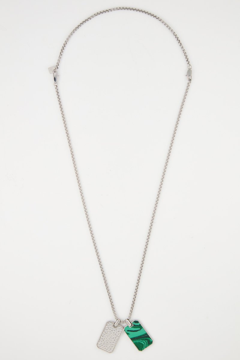 Collier Monogram - Argent et malachite