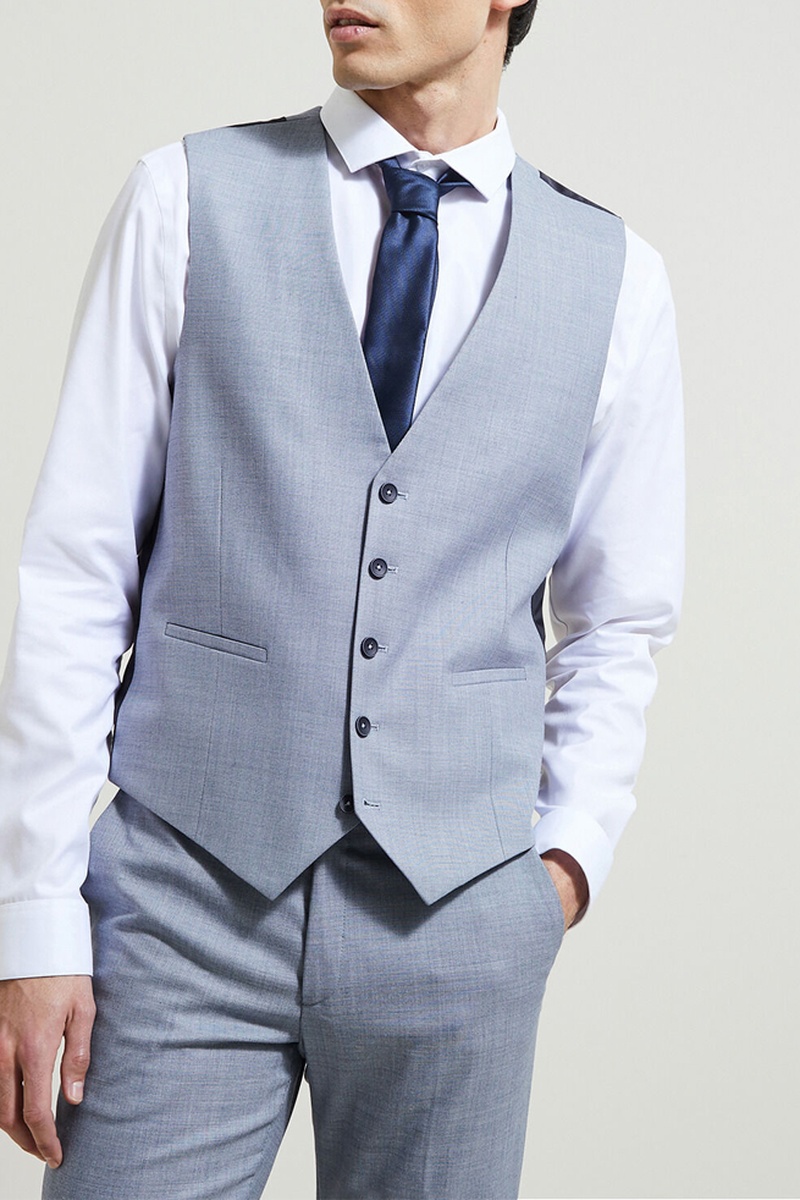 Confectionné dans un très beau tissu bi-ton, deux coloris de fils, ce gilet de costume se porte avec ou sans veste de costume, pour une touche chic quel que soit votre look.