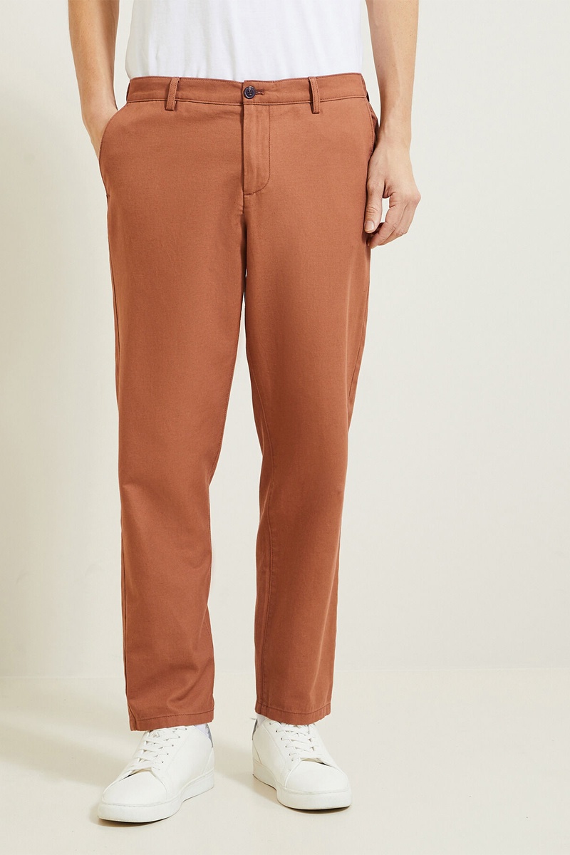 Ce pantalon chino est confectionné dans un tissu contenant du lin.