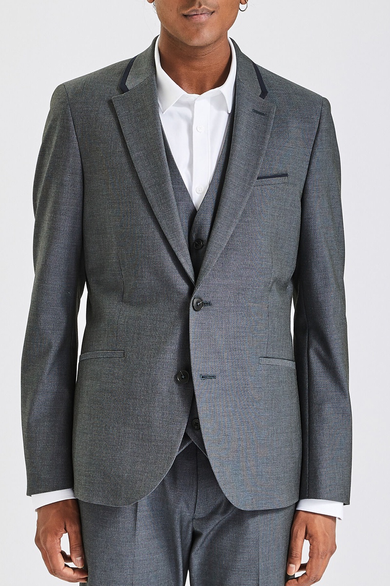 Cette veste de costume possède 2 poches passepoilées avant, 1 poche poitrine, 2 boutons de fermeture et 4 boutons en bas de manches.