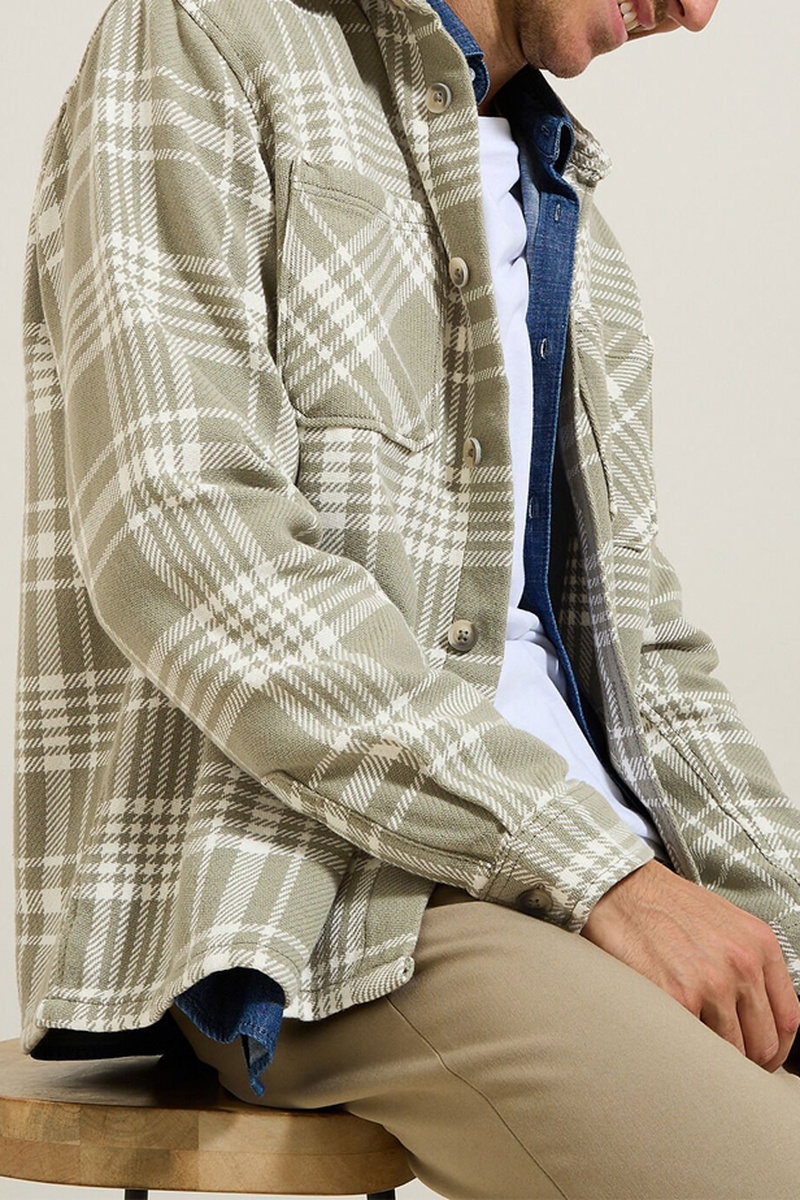 Cette chemise à carreaux se marie parfaitement avec un t-shirt blanc uni, un pantalon chino beige et des baskets blanches pour un look décontracté.
